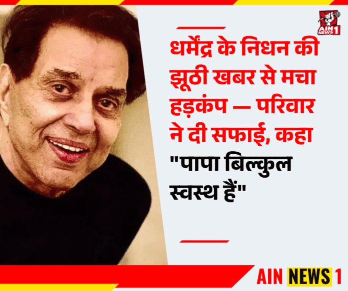 AIN NEWS 1 | सोशल मीडिया की दुनिया में आज सुबह से ही एक झूठी खबर ने सभी को चौंका दिया। खबर फैली कि हिंदी सिनेमा के दिग्गज अभिनेता धर्मेंद्र सिंह देओल का निधन हो गया है। कुछ ही मिनटों में यह अफवाह आग की तरह फैल गई और पूरे देश में शोक की लहर दौड़ गई। ट्विटर, फेसबुक और व्हाट्सएप पर श्रद्धांजलि संदेशों की बाढ़ आ गई। लेकिन सच्चाई कुछ और ही थी — धर्मेंद्र जी बिल्कुल स्वस्थ हैं।