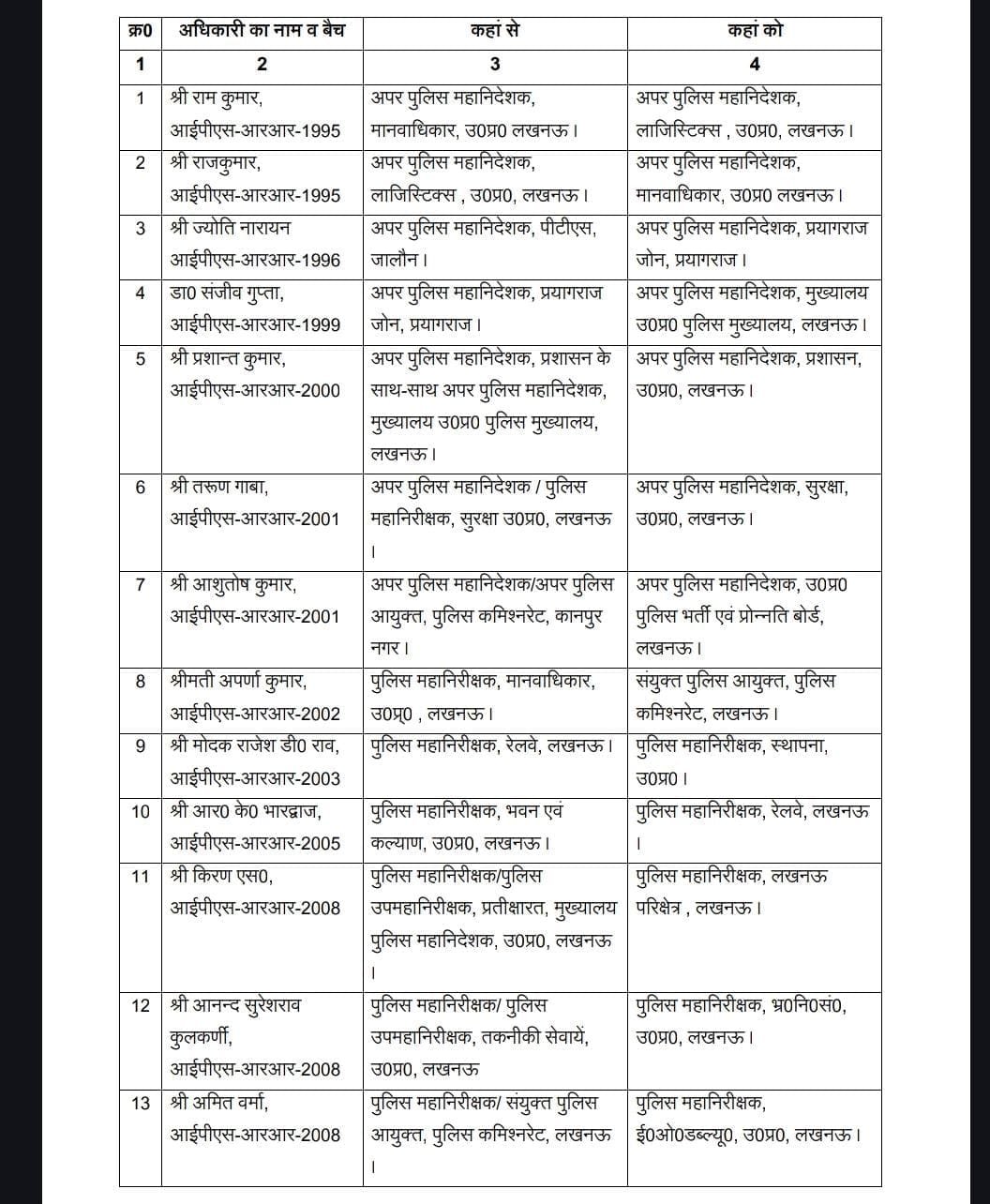 2008 बैच के कई अधिकारियों को अलग-अलग संवेदनशील पदों पर रखा गया है: