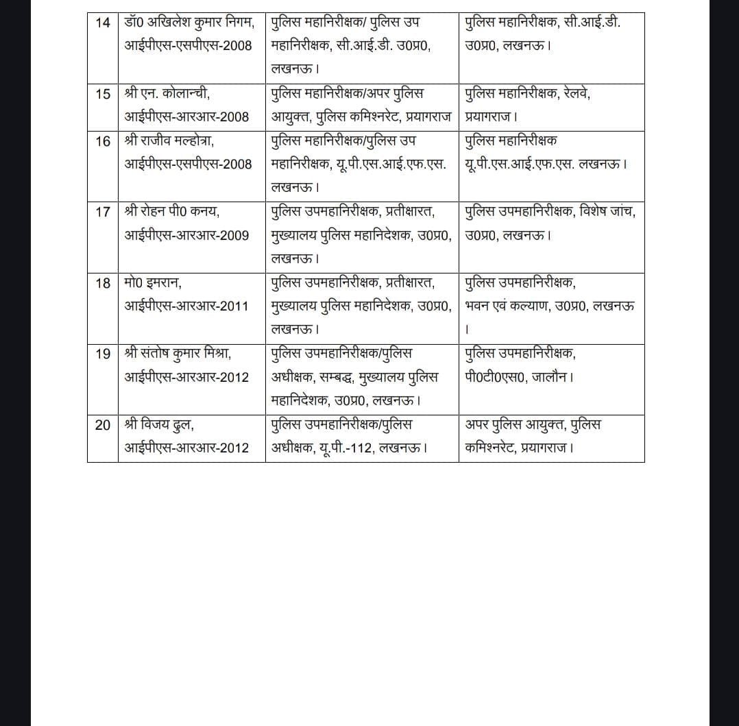 2000 बैच के अधिकारी डॉ. संजीव गुप्ता की तैनाती पुलिस मुख्यालय में की गई है। इससे पहले वे प्रयागराज जोन में सेवाएं दे रहे थे।