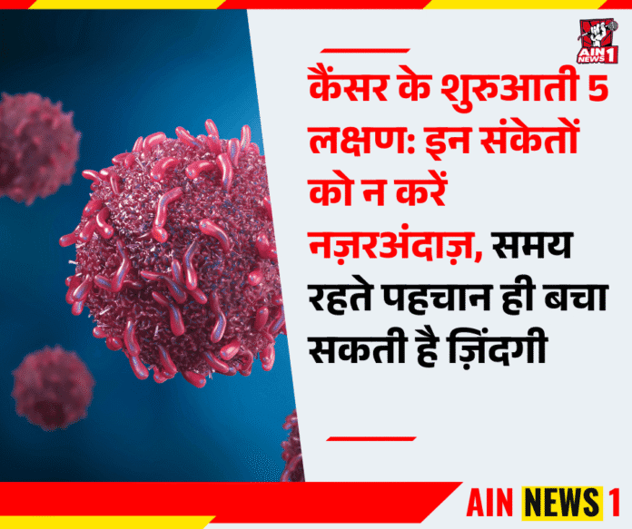 AIN NEWS 1 | कैंसर (Cancer) ऐसी बीमारी है जो धीरे-धीरे शरीर के अंदर विकसित होती है। अगर इसे शुरुआती अवस्था में पहचान लिया जाए, तो इलाज काफी आसान और प्रभावी हो सकता है। लेकिन ज्यादातर लोग इसके शुरुआती लक्षणों को हल्के में ले लेते हैं, जिससे यह बीमारी आगे बढ़ जाती है और स्थिति गंभीर बन जाती है।