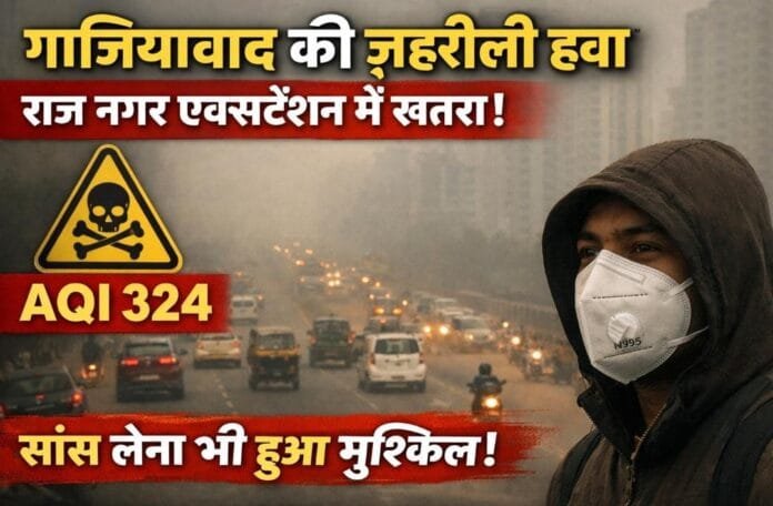 AIN NEWS 1: गाजियाबाद की हवा एक बार फिर लोगों के लिए गंभीर खतरा बनती जा रही है। शहर के प्रमुख रिहायशी इलाके राज नगर एक्सटेंशन में वायु गुणवत्ता सूचकांक (AQI) खतरनाक स्तर पर पहुंच चुका है। सोमवार शाम 5:17 बजे दर्ज आंकड़ों के अनुसार, यहां AQI 324 रिकॉर्ड किया गया, जो ‘Hazardous’ यानी अत्यंत खतरनाक श्रेणी में आता है।