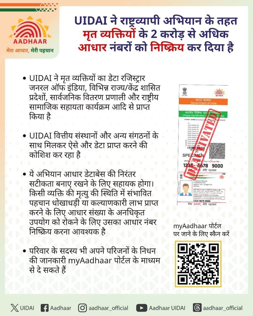 इसलिए मृत व्यक्तियों के आधार नंबरों को निष्क्रिय कर देना जरूरी है ताकि: