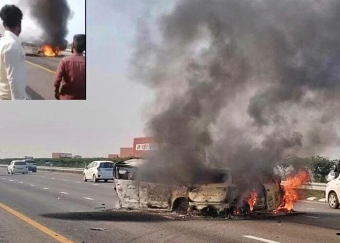 प्रत्यक्षदर्शियों के मुताबिक, आग की लपटें इतनी तेज थीं कि पास मौजूद लोग कुछ भी करने की हालत में नहीं थे। कार को देखते ही समझ आ रहा था कि अंदर बैठे लोगों की जान बचाना मुश्किल है। कुछ ही मिनट में पूरा वाहन कबाड़ बन गया।