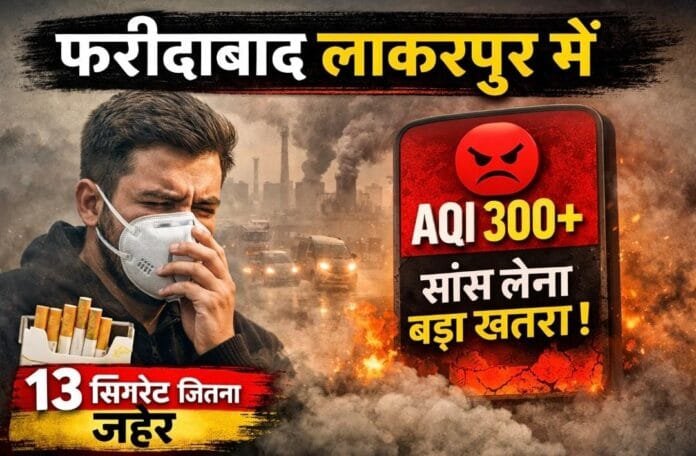Faridabad’s Lakarpur village is facing severe air pollution as the AQI crosses 300, placing it in the hazardous category. High PM2.5 and PM10 levels have made breathing equivalent to smoking over 13 cigarettes a day. The rising Faridabad AQI highlights the urgent need for pollution control measures across NCR India to protect public health.