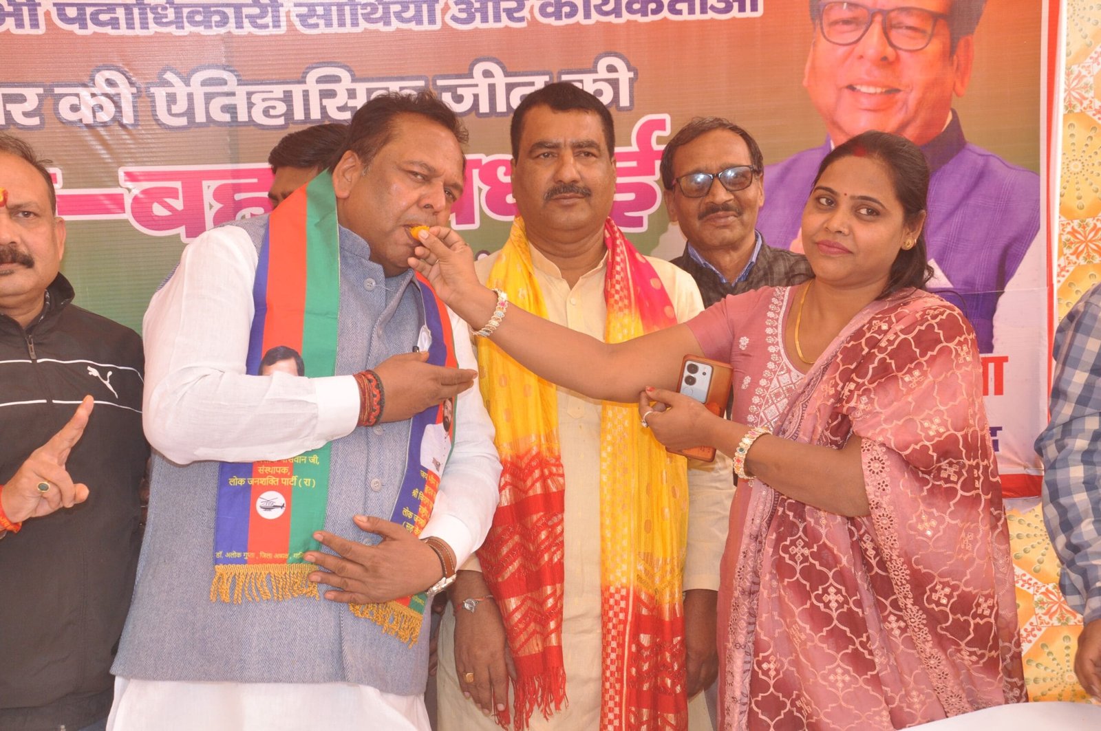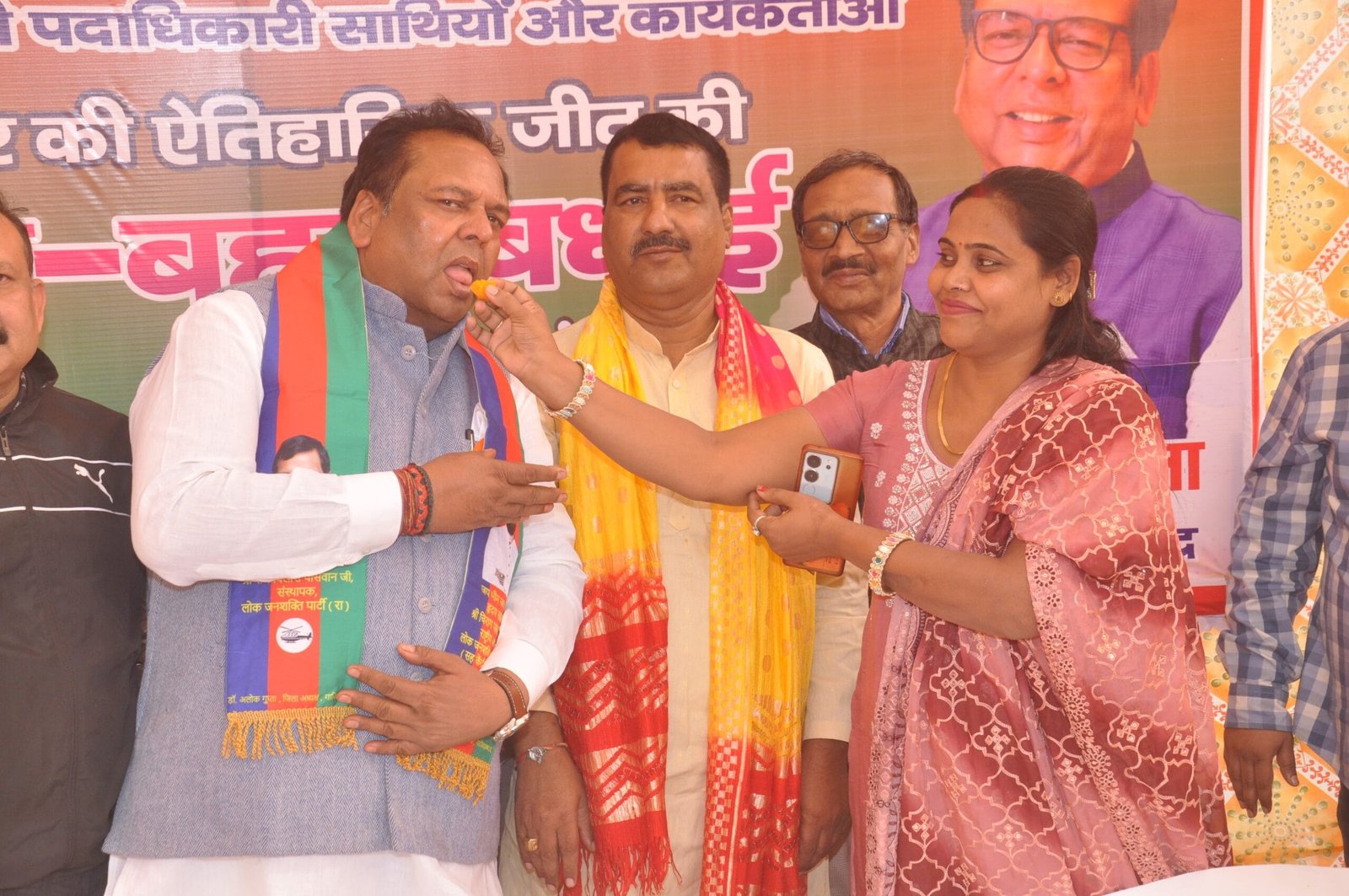 लोक जनशक्ति पार्टी (रामविलास) के जिला अध्यक्ष डॉ. आलोक गुप्ता ने विशेष रूप से सभी आगंतुकों का स्वागत किया और उनके प्रति आभार व्यक्त किया। उन्होंने कहा कि सभी लोगों का साथ और सहयोग इस ऐतिहासिक जीत की असली ताकत है। उन्होंने इस अवसर को सिर्फ एक समारोह नहीं बल्कि जनता की एकता और लोकतंत्र की जीत बताया।