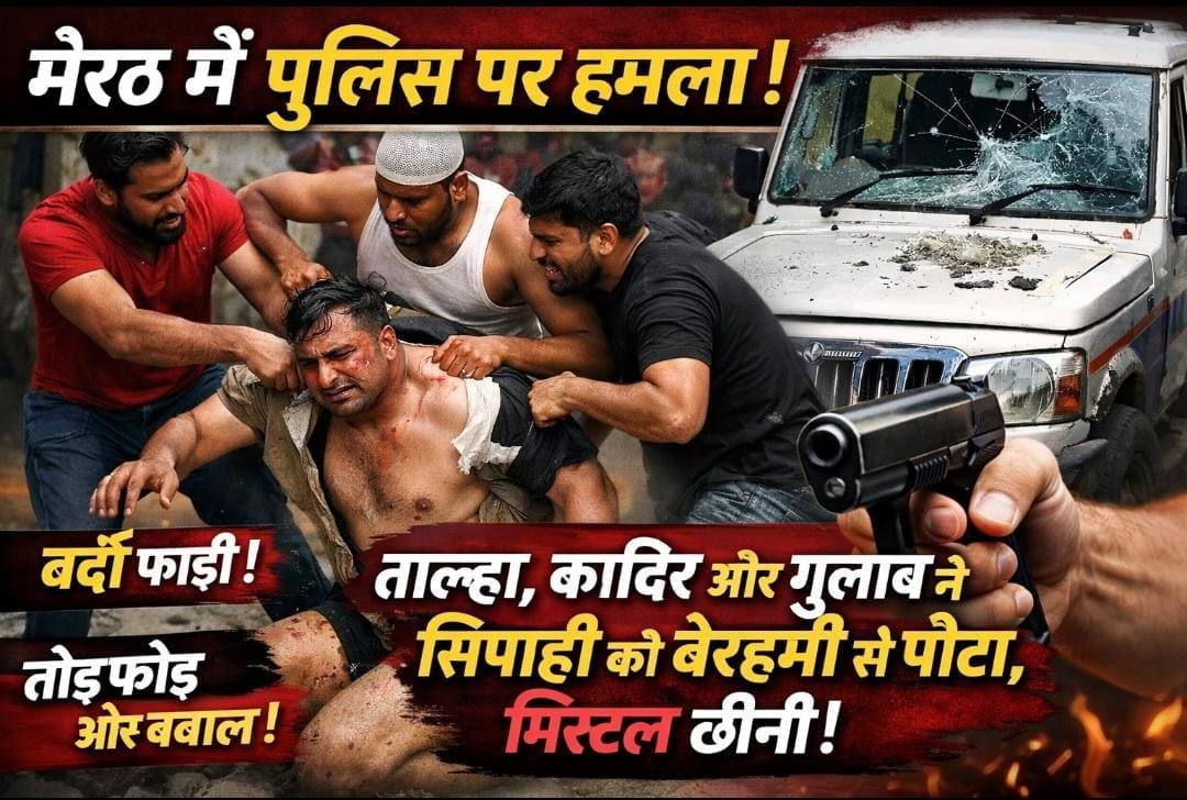 A shocking incident of Meerut police assault has surfaced from Mawana village in Uttar Pradesh, where a police team was brutally attacked during an arrest operation. The accused not only assaulted a constable but also attempted a pistol snatching, tore the uniform, and vandalized a police vehicle. The Meerut crime news has raised serious concerns about law and order and police safety in rural areas of Uttar Pradesh. Three accused have been arrested, and further investigation is underway.