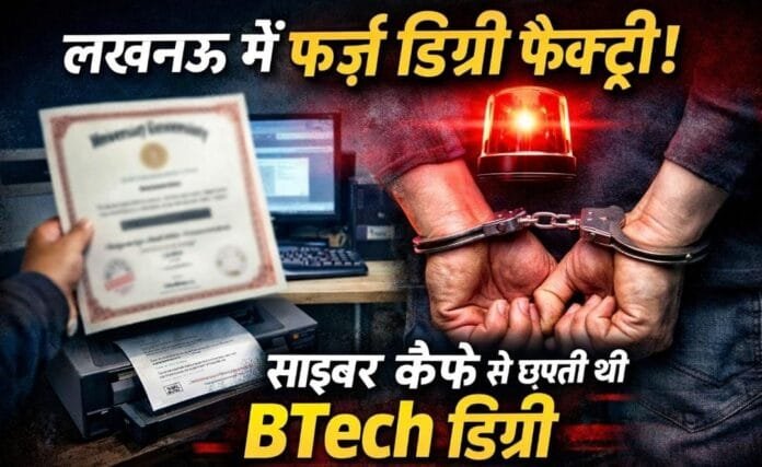 AIN NEWS 1: उत्तर प्रदेश की राजधानी लखनऊ से एक चौंकाने वाला मामला सामने आया है, जहां फर्जी मार्कशीट और डिग्री तैयार करने वाले एक संगठित गिरोह का भंडाफोड़ किया गया है। यह गिरोह न केवल बीटेक बल्कि कई अन्य प्रोफेशनल और सामान्य कोर्स की नकली डिग्रियां तैयार कर रहा था। हैरानी की बात यह है कि ये सभी डिग्रियां किसी हाईटेक फैक्ट्री में नहीं, बल्कि शहर के एक साधारण साइबर कैफे में प्रिंट की जा रही थीं।