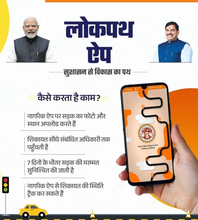 लोकपथ ऐप, मध्य प्रदेश के लोक निर्माण विभाग (PWD) द्वारा विकसित एक नागरिक-सहभागिता आधारित एप्लिकेशन है। इसका उद्देश्य है — “सड़क विकास में जनता की सक्रिय भागीदारी सुनिश्चित करना।” इस ऐप की मदद से नागरिक न केवल खराब सड़कों की जानकारी दे सकते हैं, बल्कि मरम्मत की पूरी प्रक्रिया को ट्रैक भी कर सकते हैं।