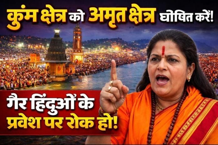 Haridwar Kumbh Mela is one of the largest religious gatherings in the world, and Har Ki Pauri is the most sacred bathing ghat on the banks of river Ganga. VHP leader Sadhvi Prachi has raised a demand to declare the Haridwar Kumbh region as Amrit Kshetra and impose strict restrictions on non-Hindu entry to protect the sanctity of the holy place. This statement has created debate in religious tourism circles and political forums. Har Ki Pauri, Kumbh Mela area, Sadhvi Prachi, Vishva Hindu Parishad leaders and Haridwar religious news are important keywords linked with this issue, which continues to remain in national headlines.