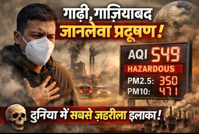 AIN NEWS 1: рдЙрддреНрддрд░ рдкреНрд░рджреЗрд╢ рдХреЗ рдЧрд╛рдЬрд┐рдпрд╛рдмрд╛рдж рдЬрд┐рд▓реЗ рд╕реЗ рдПрдХ рдмреЗрд╣рдж рдЪрд┐рдВрддрд╛рдЬрдирдХ рддрд╕реНрд╡реАрд░ рд╕рд╛рдордиреЗ рдЖрдИ рд╣реИред рдЧрд╛рдЬрд┐рдпрд╛рдмрд╛рдж рдХреЗ рдЧрдврд╝реА рдЗрд▓рд╛рдХреЗ рдореЗрдВ рд╡рд╛рдпреБ рдЧреБрдгрд╡рддреНрддрд╛ рд╕реВрдЪрдХрд╛рдВрдХ (AQI) 549 рджрд░реНрдЬ рдХрд┐рдпрд╛ рдЧрдпрд╛ рд╣реИ, рдЬреЛ рдХрд┐ тАЬHazardousтАЭ рдпрд╛рдиреА рдЕрддреНрдпрдВрдд рдЦрддрд░рдирд╛рдХ рд╢реНрд░реЗрдгреА рдореЗрдВ рдЖрддрд╛ рд╣реИред рдЗрд╕ рд╕реНрддрд░ рдХреА рд╣рд╡рд╛ рдореЗрдВ рд╕рд╛рдВрд╕ рд▓реЗрдирд╛ рд╕реАрдзреЗ рддреМрд░ рдкрд░ рд╕реЗрд╣рдд рдХреЗ рд▓рд┐рдП рдЧрдВрднреАрд░ рдЦрддрд░рд╛ рдмрди рд╕рдХрддрд╛ рд╣реИред