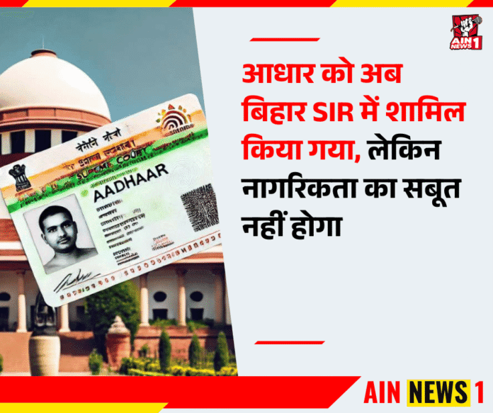 AIN NEWS 1 | बिहार में इस समय मतदाता सूची के विशेष पुनरीक्षण कार्यक्रम (SIR) पर खूब चर्चा हो रही है। इस प्रक्रिया को लेकर सुप्रीम कोर्ट ने एक अहम आदेश जारी किया है। कोर्ट ने कहा है कि अब आधार कार्ड को भी वोटर लिस्ट पुनरीक्षण के लिए एक अतिरिक्त दस्तावेज के रूप में स्वीकार किया जाएगा।
