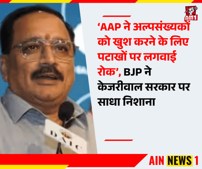AIN NEWS 1 | दिल्ली में पटाखों पर लगी रोक को लेकर एक बार फिर राजनीतिक बयानबाज़ी तेज हो गई है। भारतीय जनता पार्टी (BJP) ने आम आदमी पार्टी (AAP) पर तीखा हमला बोलते हुए आरोप लगाया है कि यह रोक पर्यावरण की चिंता के नाम पर नहीं, बल्कि “अल्पसंख्यकों को खुश करने” की रणनीति के तहत लगाई गई थी। दिल्ली बीजेपी अध्यक्ष वीरेंद्र सचदेवा ने केजरीवाल सरकार और उनके मंत्रियों पर गंभीर आरोप लगाते हुए कहा कि पिछले सात-आठ वर्षों में उन्होंने जानबूझकर हिंदू त्योहारों को निशाना बनाया है।