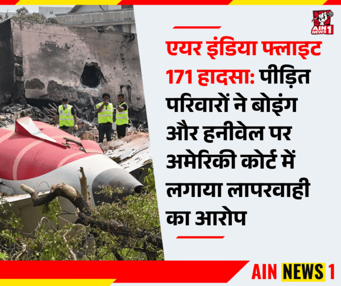 AIN NEWS 1 | एयर इंडिया की फ्लाइट 171 का हादसा आज भी उन परिवारों के ज़ेहन में ताज़ा है, जिन्होंने अपने प्रियजनों को इस त्रासदी में खो दिया. अहमदाबाद से लंदन जा रही इस फ्लाइट में 12 जून को दुर्घटना हुई थी, जिसमें 260 लोगों की जान गई. हादसे में सिर्फ एक यात्री ही जीवित बच पाया. अब इस घटना से जुड़े चार पीड़ित परिवारों ने अमेरिकी कंपनियों बोइंग (Boeing) और हनीवेल (Honeywell) के खिलाफ मुकदमा दायर किया है.