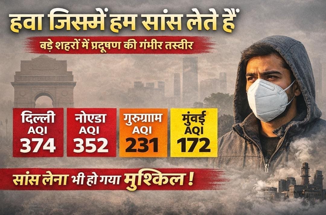 AIN NEWS 1: सुबह की ताज़ी हवा में गहरी सांस लेना किसी भी इंसान के लिए सुकून देने वाला अनुभव होता है। लेकिन देश के कई बड़े शहरों में यह सुकून अब धीरे-धीरे चिंता में बदलता जा रहा है। 30 दिसंबर 2025 की सुबह 9 बजे तक दर्ज किए गए वायु गुणवत्ता सूचकांक (AQI) के आंकड़े यही बताते हैं कि हम जिस हवा में सांस ले रहे हैं, वह कई जगहों पर सेहत के लिए सुरक्षित नहीं रह गई है।