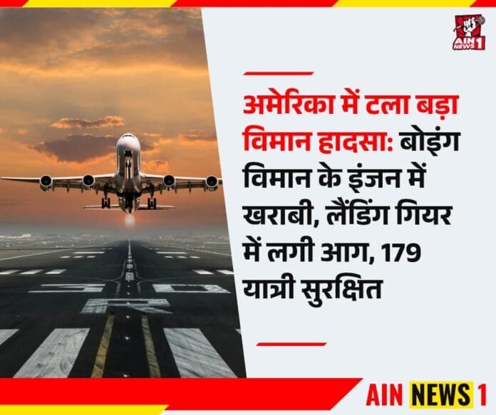 अमेरिका में टला बड़ा विमान हादसा: बोइंग विमान के इंजन में खराबी, लैंडिंग गियर में आग, 179 यात्री सुरक्षित