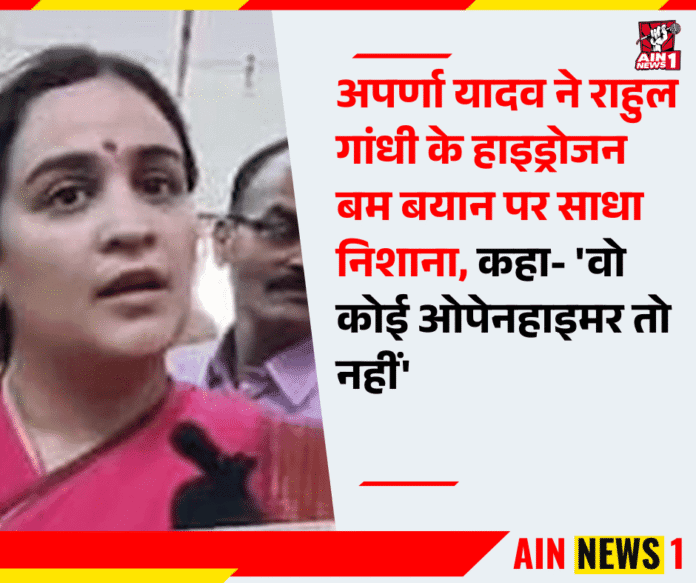 AIN NEWS 1 | लोकसभा में नेता प्रतिपक्ष और कांग्रेस सांसद राहुल गांधी लगातार वोट चोरी के आरोप और चुनाव आयोग पर निशाना साध रहे हैं। हाल ही में राहुल गांधी ने अपने हाइड्रोजन बम वाले बयान के कारण सुर्खियों में आ गए। इस बयान पर अब बीजेपी नेता और उत्तर प्रदेश महिला आयोग की उपाध्यक्ष अपर्णा यादव ने कड़ा विरोध जताया है।