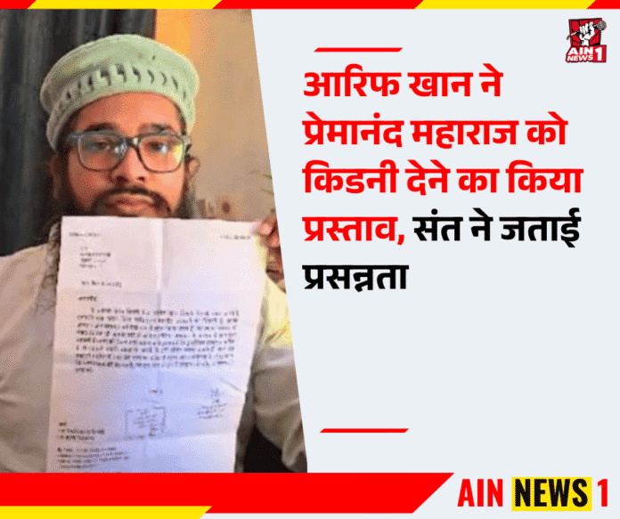 AIN NEWS 1 | मध्य प्रदेश के इटारसी के रहने वाले आरिफ खान ने वृंदावन के संत प्रेमानंद महाराज को अपनी किडनी देने की इच्छा जताई। इसके लिए उन्होंने जिला कलेक्टर को पत्र लिखकर अपनी मंशा भी स्पष्ट की। आरिफ ने बताया कि वे महाराज के आध्यात्मिक प्रवचनों और समाजसेवा के कार्यों से अत्यंत प्रभावित हैं और उनकी भक्ति, सादगी और युवाओं को नैतिक जीवन जीने की प्रेरणा देने वाले संदेशों से प्रेरित होकर यह कदम उठाया।