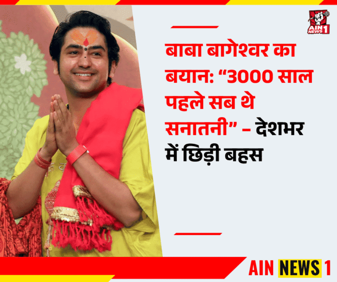 AIN NEWS 1 | बागेश्वर धाम के प्रमुख धीरेंद्र कृष्ण शास्त्री (बाबा बागेश्वर) अपने बयानों को लेकर अक्सर सुर्खियों में रहते हैं। हाल ही में उन्होंने कहा कि 3000 साल पहले इस धरती पर जो भी लोग रहते थे, वे सभी सनातनी थे। उस दौर में न इस्लाम था और न ही ईसाई धर्म।