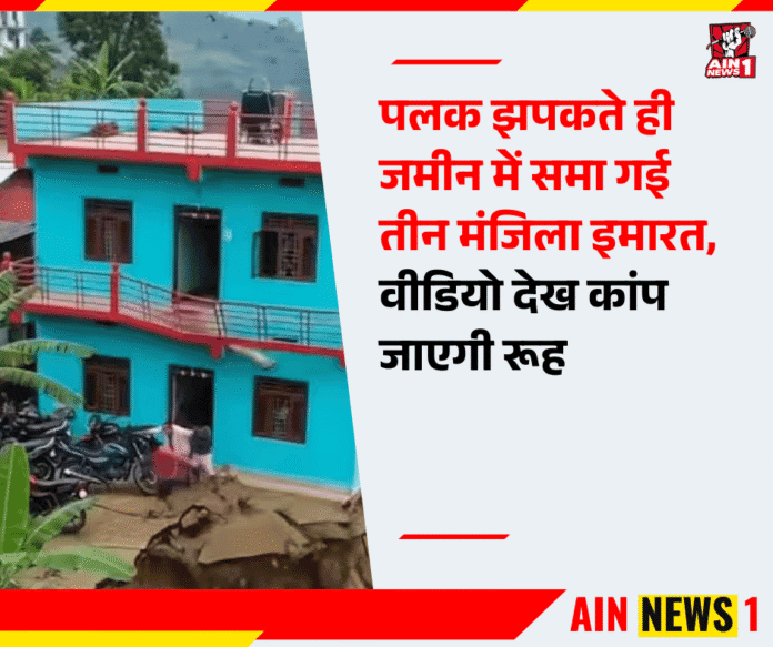 AIN NEWS 1 | सोशल मीडिया पर इन दिनों एक ऐसा वीडियो वायरल हो रहा है जिसने लाखों लोगों को दहशत में डाल दिया है। वीडियो में साफ देखा जा सकता है कि कैसे बाढ़ और लगातार बारिश से आई नमी ने मिट्टी को कमजोर कर दिया और देखते ही देखते एक मजबूत दिखने वाली तीन मंजिला इमारत पलक झपकते ही जमीन में समा गई। यह मंजर इतना भयावह था कि वहां मौजूद लोग दंग रह गए और इंटरनेट पर इसे देखने वाले भी सहम उठे।