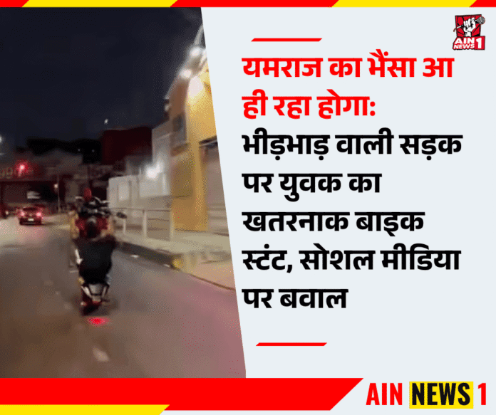 AIN NEWS 1 | सोशल मीडिया पर रोजाना हजारों वीडियो वायरल होते रहते हैं। इनमें से कुछ मजेदार होते हैं, तो कुछ डराने वाले और कई बार चौंकाने वाले भी। हाल ही में ऐसा ही एक वीडियो सामने आया है, जिसमें एक युवक अपनी बाइक पर खतरनाक स्टंट करता दिख रहा है।