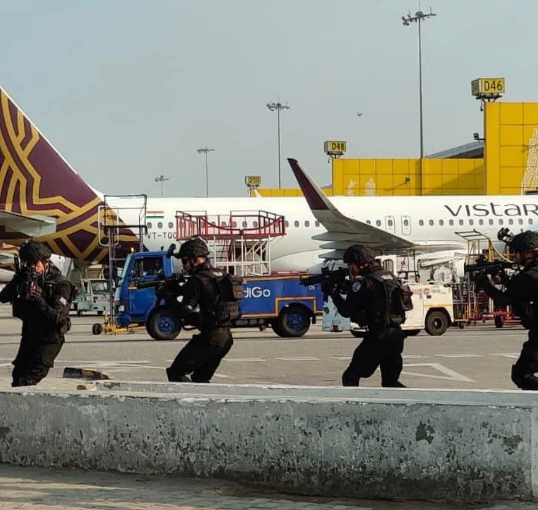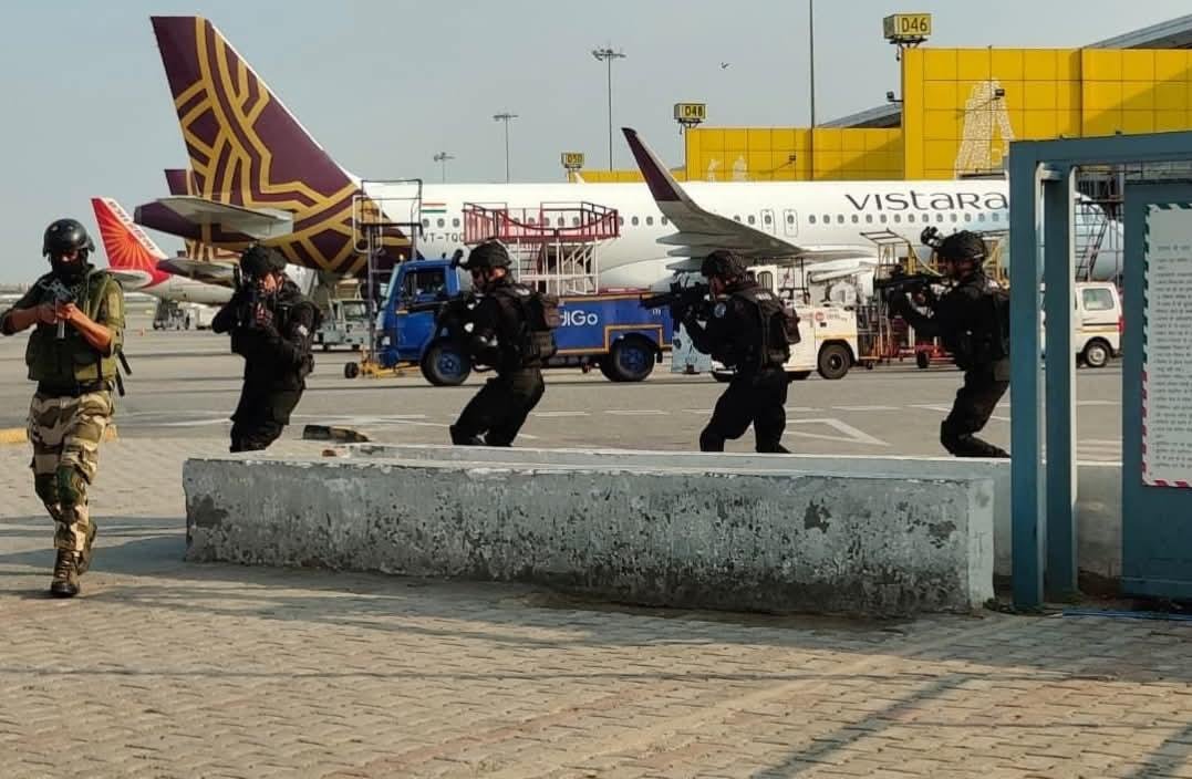 A high-intensity counter-terrorism mock drill was conducted at Indira Gandhi International Airport in Delhi to evaluate security preparedness and emergency response capabilities. The drill involved multiple agencies including CISF, NSG, Delhi Police, BCAS, DGCA, and fire and medical teams, demonstrating strong coordination in handling potential threats at one of India’s busiest airports. This exercise highlights India’s commitment to aviation security, rapid response, and inter-agency collaboration to tackle any emergency situation effectively.