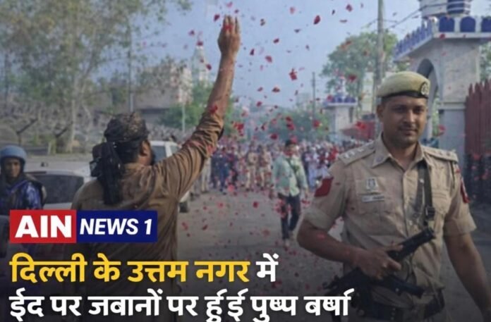 AIN NEWS 1: दिल्ली में ईद का त्योहार इस बार खास माहौल और सकारात्मक संदेश के साथ मनाया गया। राजधानी के उत्तम नगर इलाके में एक ऐसी तस्वीर सामने आई, जिसने लोगों के दिलों को छू लिया। यहां ईद के मौके पर ईदगाह कमेटी द्वारा सुरक्षा में तैनात पुलिसकर्मियों और जवानों पर फूलों की वर्षा की गई। यह नज़ारा सिर्फ एक परंपरा या रस्म नहीं था, बल्कि समाज और सुरक्षा बलों के बीच आपसी सम्मान और विश्वास का प्रतीक बन गया।