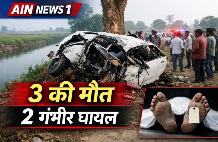 AIN NEWS 1: उत्तर प्रदेश के एटा जिले से एक दर्दनाक सड़क हादसे की खबर सामने आई है। मलावन थाना क्षेत्र के अंतर्गत बावली नहर के पास एक तेज रफ्तार कार अनियंत्रित होकर पहले पेड़ से टकराई और फिर पलट गई। इस भीषण दुर्घटना में तीन लोगों की मौके पर ही मौत हो गई, जबकि दो अन्य गंभीर रूप से घायल हो गए। हादसे के बाद इलाके में अफरा-तफरी मच गई और मौके पर बड़ी संख्या में लोग जमा हो गए।