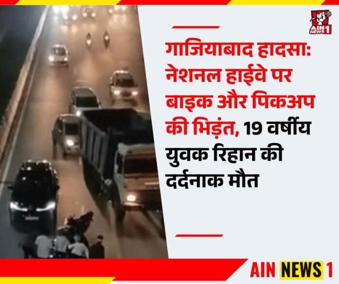 AIN NEWS 1 गाजियाबाद: नेशनल हाईवे पर उस समय अफरा-तफरी मच गई जब सुंदरदीप कॉलेज के सामने एक भीषण सड़क हादसा हो गया। हादसा इतना भयावह था कि देखने वालों के दिल दहल उठे। इस सड़क दुर्घटना में 19 वर्षीय युवक रिहान की दर्दनाक मौत हो गई, जिससे परिवार और पूरे इलाके में मातम छा गया।