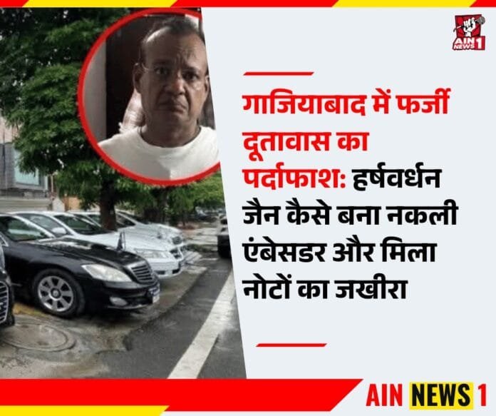 AIN NEWS 1: गाजियाबाद के कविनगर इलाके से हाल ही में एक चौंकाने वाला मामला सामने आया है। यहाँ यूपी एसटीएफ (विशेष कार्यबल) ने एक फर्जी दूतावास का पर्दाफाश करते हुए मास्टरमाइंड हर्षवर्धन जैन को गिरफ्तार कर लिया। यह मामला इतना हैरान करने वाला है क्योंकि दूतावास जैसी संवेदनशील संस्थाओं को नकली तरीके से चलाने की कल्पना भी कम ही लोग कर सकते हैं।