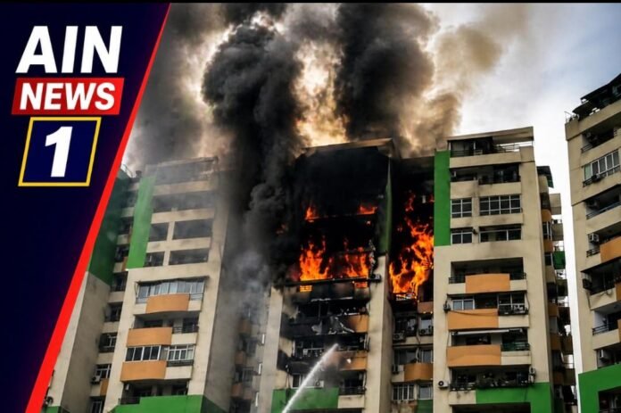 AIN NEWS 1: गाजियाबाद के इंदिरापुरम इलाके में स्थित गौर ग्रीन एवेन्यू सोसाइटी में बुधवार सुबह एक भीषण आग लगने की घटना ने पूरे क्षेत्र को हिला कर रख दिया। यह हादसा सुबह करीब 9 बजे हुआ, जब 10वीं मंजिल के एक फ्लैट से अचानक धुआं और आग की लपटें उठती दिखाई दीं। देखते ही देखते यह आग तेजी से फैलती चली गई और 9वीं, 10वीं और 11वीं मंजिल के कई फ्लैट इसकी चपेट में आ गए।
