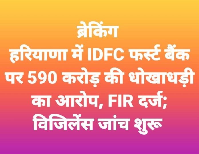 AIN NEWS 1: हरियाणा में वित्तीय अनियमितताओं को लेकर एक बड़ा मामला सामने आया है, जिसने बैंकिंग सेक्टर और सरकारी संस्थानों के बीच कामकाज के तौर-तरीकों पर गंभीर सवाल खड़े कर दिए हैं। राज्य सरकार से जुड़े करीब 590 करोड़ रुपये के कथित घोटाले को लेकर IDFC First Bank के खिलाफ एफआईआर दर्ज की गई है। इस मामले की जांच अब हरियाणा विजिलेंस विभाग ने अपने हाथ में ले ली है।