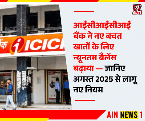 AIN NEWS 1 | अगर आप आईसीआईसीआई बैंक में नया बचत खाता खोलने की सोच रहे हैं, तो यह खबर आपके लिए खास है। देश के प्रमुख निजी बैंकों में से एक ICICI Bank ने अपने न्यूनतम औसत मासिक बैलेंस (Minimum Average Balance – MAB) नियम में बड़ा बदलाव किया है। नया नियम 1 अगस्त 2025 से लागू हो गया है और फिलहाल यह सिर्फ नए ग्राहकों के लिए मान्य है।