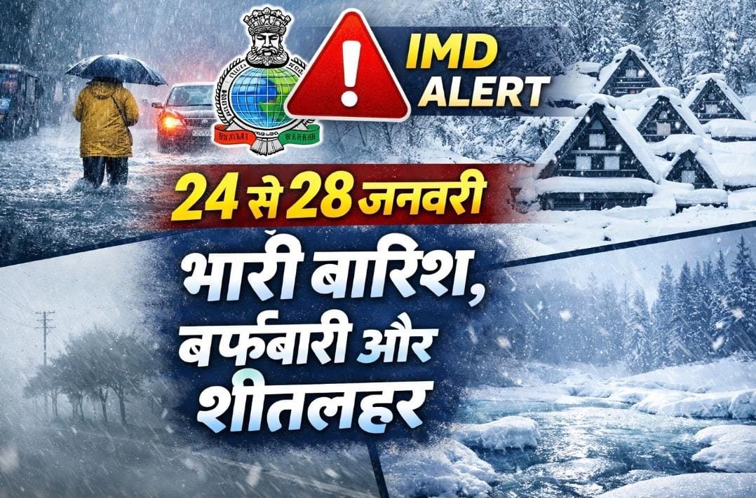 The IMD rain alert from 24 to 28 January highlights the impact of an active western disturbance across North India, bringing heavy rainfall, snowfall in Himalayan regions, strong winds, cold wave conditions and dense fog. States such as Delhi NCR, Uttar Pradesh, Rajasthan, Punjab, Haryana, Himachal Pradesh, Uttarakhand and Jammu and Kashmir are likely to witness significant weather changes, affecting daily life, travel and agriculture.