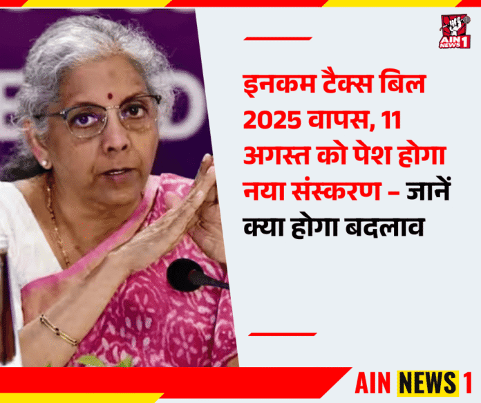 AIN NEWS 1 | केंद्र सरकार ने इनकम टैक्स बिल 2025 को फिलहाल लोकसभा से वापस ले लिया है। इसके स्थान पर सरकार अब इसका संशोधित संस्करण लेकर आएगी, जिसे 11 अगस्त 2025 को लोकसभा में पेश किया जाएगा।