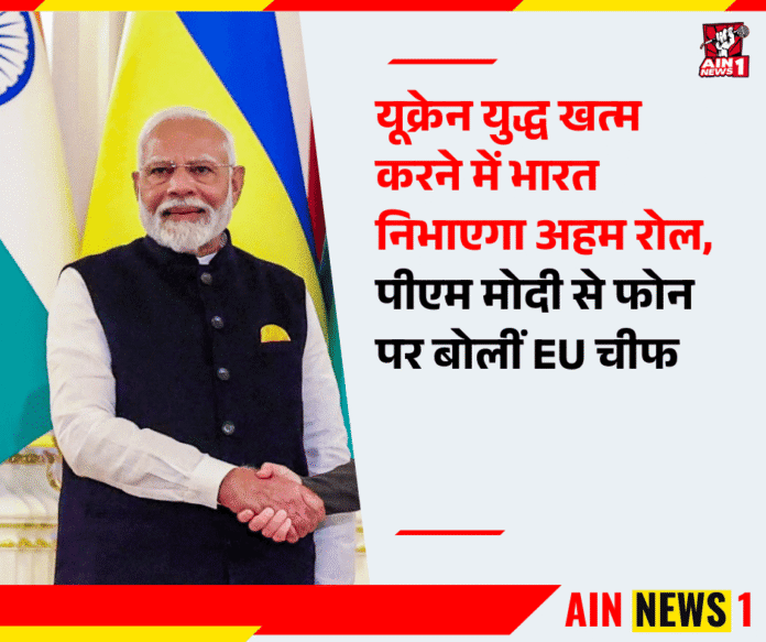 AIN NEWS 1 | यूरोपीय संघ (EU) की अध्यक्ष उर्सुला वॉन डेर लेयेन ने 4 सितंबर 2025 को प्रधानमंत्री नरेंद्र मोदी से फोन पर बातचीत की। इस वार्ता के दौरान दोनों नेताओं ने कई अहम मुद्दों पर चर्चा की, जिसमें भारत-यूरोपीय संघ मुक्त व्यापार समझौता (FTA) प्रमुख रहा। बातचीत का सबसे महत्वपूर्ण बिंदु यूक्रेन युद्ध था, जहां उर्सुला ने साफ कहा कि “शांति स्थापित करने में भारत की भूमिका बेहद अहम है।”