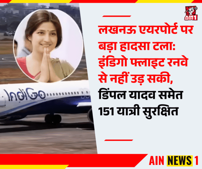 AIN NEWS 1 | उत्तर प्रदेश की राजधानी लखनऊ में रविवार (14 सितंबर 2025) को एक बड़ा हवाई हादसा होते-होते टल गया। लखनऊ एयरपोर्ट से दिल्ली के लिए उड़ान भरने जा रही इंडिगो एयरलाइंस की फ्लाइट टेकऑफ के दौरान अचानक रनवे पर ही रुक गई। विमान में 151 यात्री सवार थे, जिनमें समाजवादी पार्टी की सांसद और पूर्व मुख्यमंत्री अखिलेश यादव की पत्नी डिंपल यादव भी मौजूद थीं।