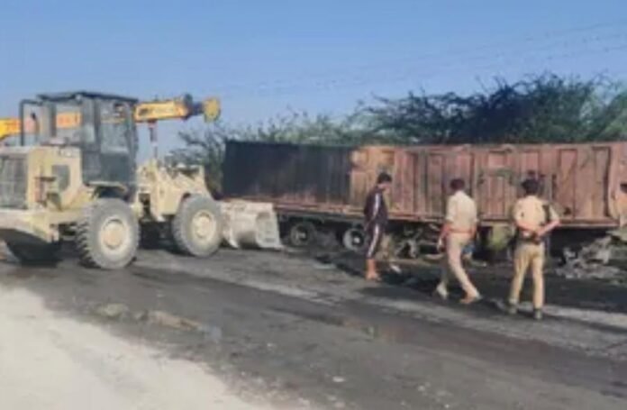 झांसी-मिर्जापुर हाईवे पर भीषण हादसा: ट्रेलरों की टक्कर के बाद आग, तीन लोगों की दर्दनाक मौत