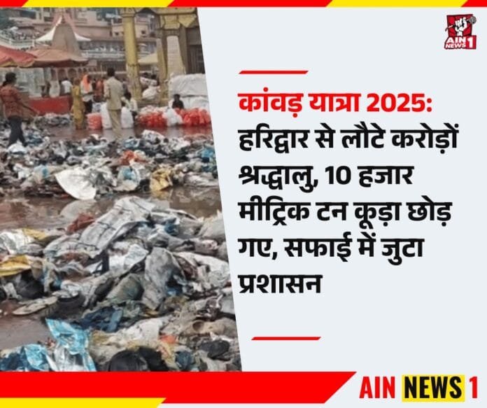 AIN NEWS 1: हरिद्वार हर साल कांवड़ यात्रा के समय लाखों-करोड़ों श्रद्धालुओं की आस्था का केंद्र बन जाता है। इस बार श्रावण कांवड़ मेले में करीब साढ़े चार करोड़ कांवड़ यात्री हरिद्वार पहुंचे और गंगाजल लेकर अपने घरों की ओर लौटे। हालांकि इस आस्था यात्रा के बाद हरिद्वार शहर में 10 हजार मीट्रिक टन कूड़े का ढेर रह गया, जिसने नगर निगम प्रशासन के सामने बड़ी चुनौती खड़ी कर दी है।