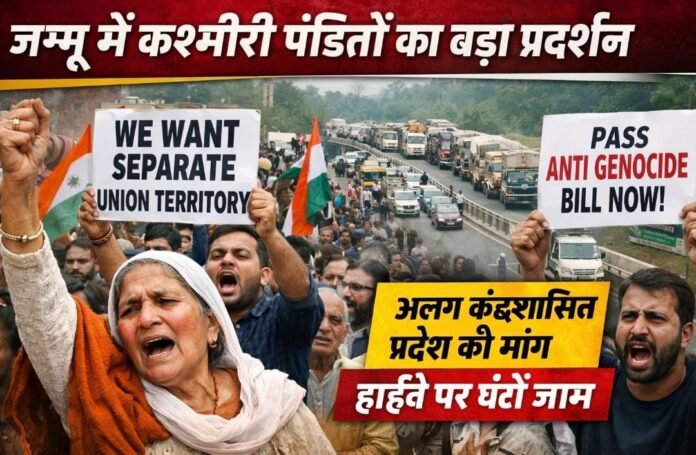 Thousands of displaced Kashmiri Pandits gathered in Jammu to protest on the 36th anniversary of their exodus from Kashmir. The protesters blocked the Jammu-Srinagar National Highway while demanding a separate Union Territory, implementation of an anti-genocide law, and official recognition as genocide victims. The protest highlighted long-standing issues of rehabilitation, security, and justice for Kashmiri Pandits who have been living in displacement for decades.