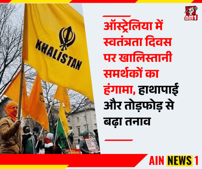 AIN NEWS 1 | भारत के 79वें स्वतंत्रता दिवस के अवसर पर ऑस्ट्रेलिया के मेलबर्न स्थित भारतीय महावाणिज्य दूतावास (Consulate General of India) के बाहर आयोजित समारोह में उस समय तनाव फैल गया, जब खालिस्तान समर्थक अचानक प्रदर्शन करने पहुंच गए। भारतीय समुदाय इस कार्यक्रम को शांतिपूर्ण ढंग से मनाने के लिए एकत्रित हुआ था, लेकिन प्रदर्शनकारियों के आने से माहौल बिगड़ गया।
