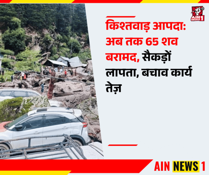 किश्तवाड़ आपदा: अब तक 65 शव बरामद, सैकड़ों लापता, बचाव कार्य तेज़