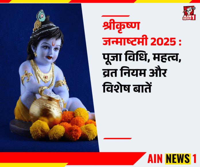 AIN NEWS 1 | जन्माष्टमी हिंदू धर्म का एक प्रमुख पर्व है जो भगवान श्रीकृष्ण के जन्मोत्सव के रूप में मनाया जाता है। धार्मिक मान्यता के अनुसार द्वापर युग की अष्टमी तिथि, रोहिणी नक्षत्र और मध्य रात्रि के समय वासुदेव और देवकी के घर श्रीकृष्ण का अवतार हुआ था। यह पर्व हर वर्ष भाद्रपद माह की कृष्ण पक्ष की अष्टमी को मनाया जाता है।