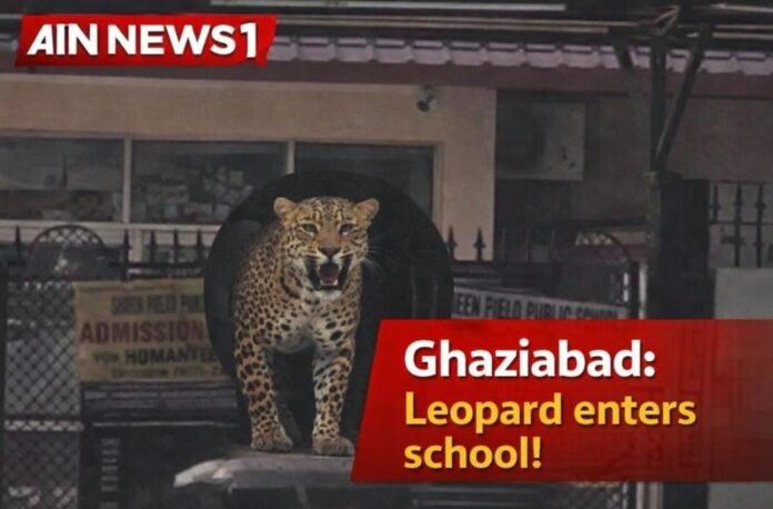 A leopard was spotted inside Greenfield School in Govindpuram, Ghaziabad, creating panic among residents and parents. The Ghaziabad police, including Kavinagar police station officials, along with the forest department team, immediately launched a search operation. CCTV footage is being examined to track the leopard’s movement in the Govindpuram area. The incident has raised serious concerns about wildlife intrusion in urban areas of Uttar Pradesh, especially incidents involving leopards entering schools and residential colonies. Authorities have appealed to the public to stay indoors and cooperate during the rescue operation.