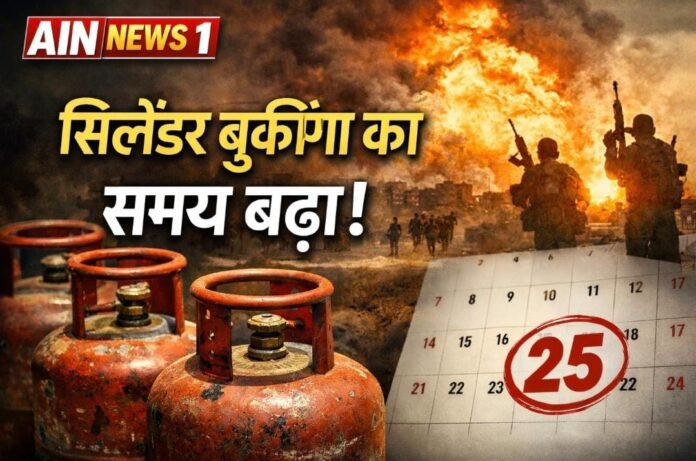 AIN NEWS 1: मिडिल ईस्ट में बढ़ते तनाव और युद्ध जैसे हालात के बीच भारत सरकार ने घरेलू गैस उपभोक्ताओं के लिए एक अहम फैसला लिया है। पेट्रोलियम और प्राकृतिक गैस मंत्रालय ने एलपीजी सिलेंडर की बुकिंग से जुड़ा नियम बदलते हुए बुकिंग का अंतराल बढ़ा दिया है। अब उपभोक्ताओं को एक सिलेंडर की बुकिंग के बाद अगले सिलेंडर की बुकिंग करने के लिए पहले से ज्यादा इंतजार करना होगा।