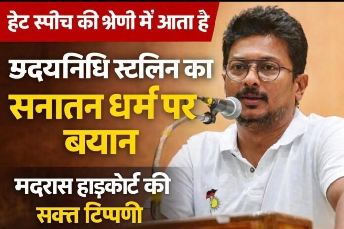 The Madras High Court’s observations on Udhayanidhi Stalin’s Sanatan Dharma remark have intensified the national debate on religious hate speech in India. The court noted that the language used in the statement could indicate genocide or cultural destruction, while also clarifying that questioning the Sanatan Dharma statement does not amount to hate speech. This controversy involving Udhayanidhi Stalin, Sanatan Dharma, and the Madras High Court has become a significant legal, political, and social issue across the country.