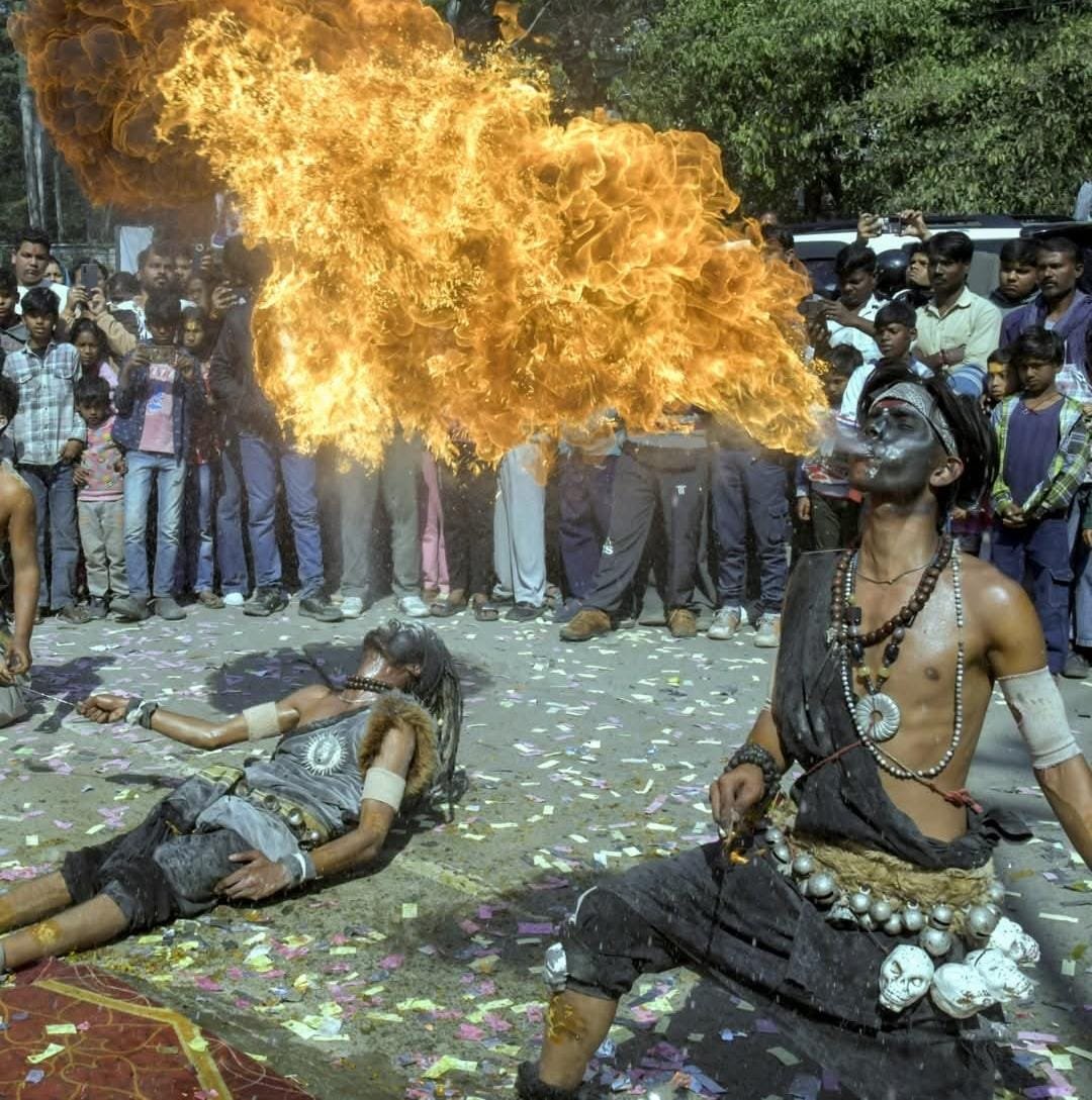 рджреЗрд╣рд░рд╛рджреВрди рдореЗрдВ рдЖрдпреЛрдЬрд┐рдд рдЗрд╕ рдХрд╛рд░реНрдпрдХреНрд░рдо рдореЗрдВ рдХрд▓рд╛рдХрд╛рд░реЛрдВ рдиреЗ рд╢рд┐рд╡ рддрд╛рдВрдбрд╡ рдФрд░ рдЕрдиреНрдп рдзрд╛рд░реНрдорд┐рдХ рдХрдерд╛рдУрдВ рдХреЛ рдЕрднрд┐рдирдп рдФрд░ рдиреГрддреНрдп рдХреЗ рдорд╛рдзреНрдпрдо рд╕реЗ рдкреНрд░рд╕реНрддреБрдд рдХрд┐рдпрд╛ред рдЬрдм рдордВрдЪ рдкрд░ рдЕрдЧреНрдирд┐ рдХреА рд▓рдкрдЯреЛрдВ рдХреЗ рдмреАрдЪ рдХрд▓рд╛рдХрд╛рд░реЛрдВ рдиреЗ рд╕рдВрддреБрд▓рд┐рдд рдФрд░ рд╕рд╛рд╣рд╕рд┐рдХ рдкреНрд░рд╕реНрддреБрддрд┐ рджреА, рддреЛ рдЙрдкрд╕реНрдерд┐рдд рд▓реЛрдЧреЛрдВ рдиреЗ рддрд╛рд▓рд┐рдпреЛрдВ рдФрд░ рдЬрдпрдХрд╛рд░реЛрдВ рд╕реЗ рдЙрдирдХрд╛ рдЙрддреНрд╕рд╛рд╣рд╡рд░реНрдзрди рдХрд┐рдпрд╛ред