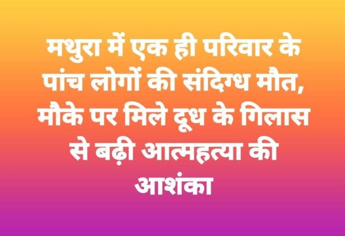 In a shocking incident from Khapparpur village in Mahavan, Mathura, five members of a family were found dead inside their home, creating panic in the area. The recovery of milk glasses near the bodies has raised suspicion of a possible mass suicide. Mathura police and forensic teams are investigating the case, and the exact cause of death will be confirmed after the postmortem report. The tragic Mathura family death case has sent shockwaves across Uttar Pradesh.