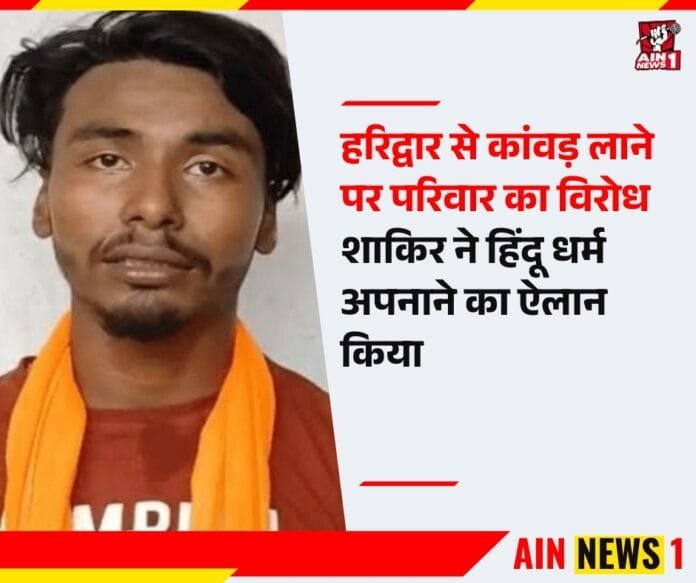 AIN NEWS 1: मेरठ जिले के फलावदा कस्बे में रहने वाले शाकिर नाम के युवक के साथ बड़ा विवाद खड़ा हो गया है। शाकिर, जो खुद को भगवान शिव का भक्त बताता है, हरिद्वार से कांवड़ लाकर शिवलिंग पर जलाभिषेक कर लौटा तो उसके अपने ही घरवालों और मोहल्ले के लोगों ने उसके खिलाफ मोर्चा खोल दिया। शाकिर का कहना है कि इस पूरे विवाद के बीच उसने हिंदू धर्म अपनाने का फैसला कर लिया है, क्योंकि अब वह भगवान शिव की भक्ति छोड़ने वाला नहीं है।