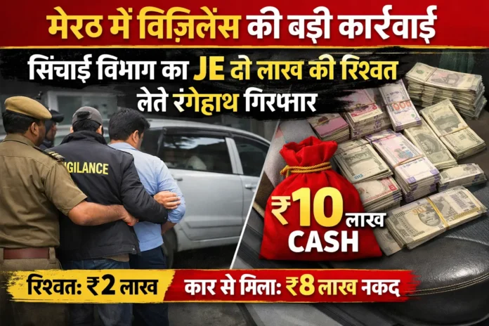 मेरठ में विजिलेंस की बड़ी कार्रवाई: सिंचाई विभाग का JE दो लाख की रिश्वत लेते रंगेहाथ गिरफ्तार, कार से मिला करीब 10 लाख कैश