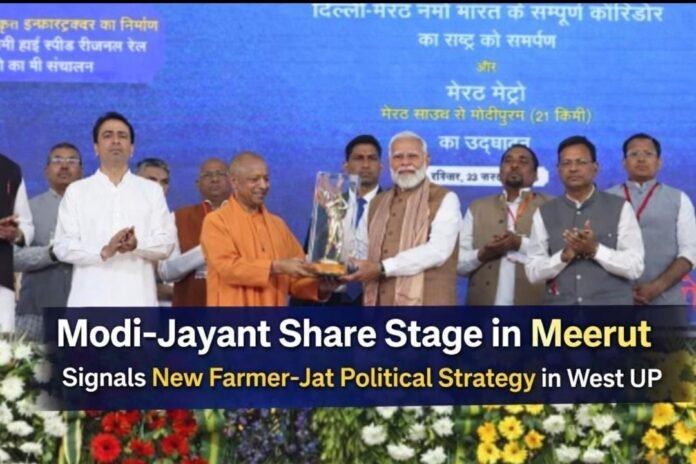 Prime Minister Narendra Modi’s public appearance with RLD chief Jayant Chaudhary during the Namo Bharat Rapid Rail and Metro project launch in Meerut has triggered major political discussions in Western Uttar Pradesh. The visual optics of BJP and RLD leadership sharing the stage is being interpreted as a strategic move to consolidate the Jat and farmer vote bank ahead of the 2027 Uttar Pradesh Assembly Elections. Modi’s repeated mention of former Prime Minister Chaudhary Charan Singh further highlights the BJP’s outreach towards agrarian communities in West UP.